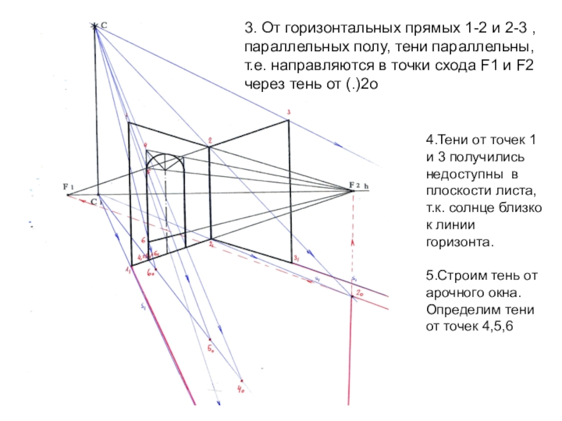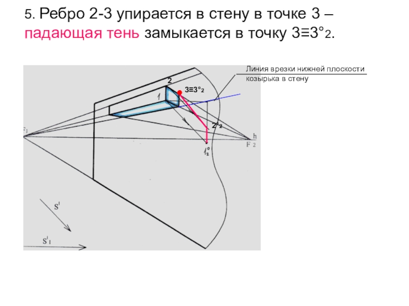 Слайд 16От горизонтальной прямой 2-3, параллельной полу, тень падает параллельно, т.е.