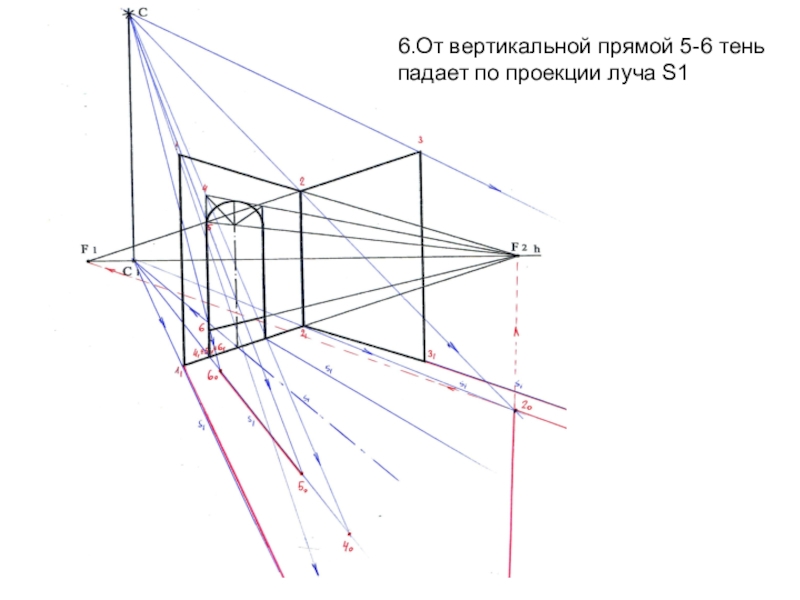 Слайд 486.От вертикальной прямой 5-6 тень падает по проекции луча S1