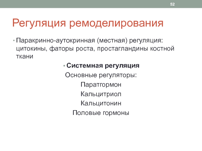 Паракринно-аутокринная (местная) регуляция: цитокины, фаторы роста, простагландины костной ткани