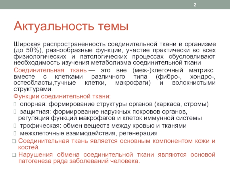 Широкая распространенность соединительной ткани в организме (до 50%), разнообразные
