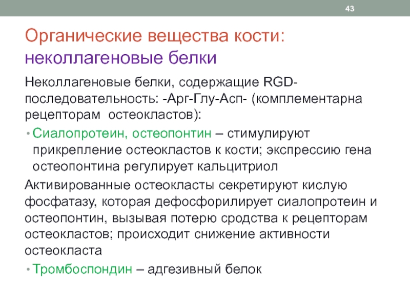 остеокальцин, сиалопротеин, остеопонтин, Gla-протеин, которые участвуют в прикреплении остеокласта к кости