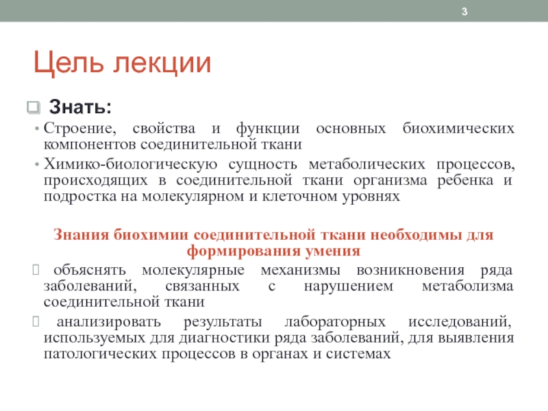 Знания биохимии соединительной ткани необходимы для формирования умения