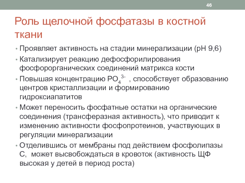 Слайд 46Роль щелочной фосфатазы в костной ткани