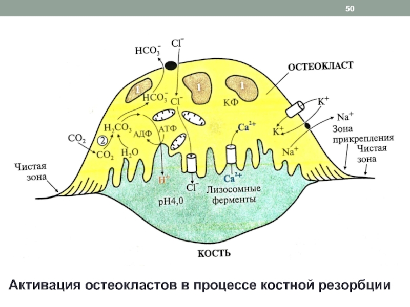 Слайд 50Активация остеокластов в процессе костной резорбции