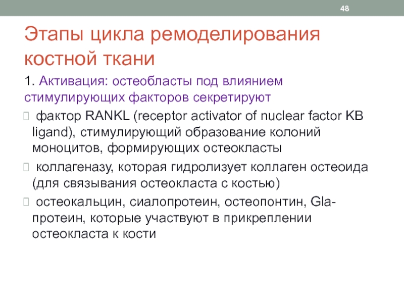 Слайд 48Этапы цикла ремоделирования костной ткани