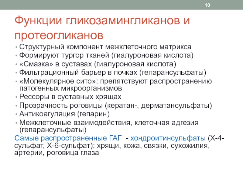 Слайд 10Функции гликозамингликанов и протеогликанов