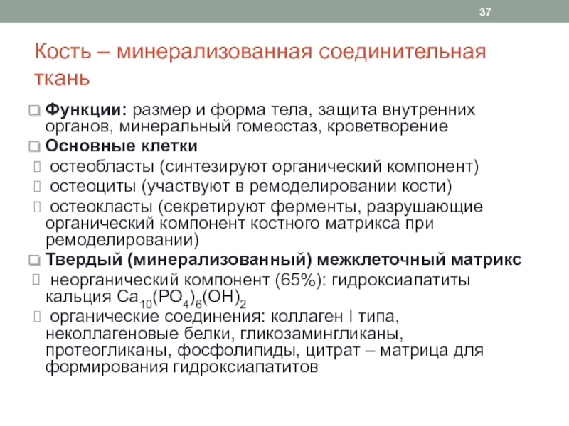 Соединительная ткань — это вне (меж-)клеточный матрикс вместе с клетками различного типа (фибро-, хондро-, остеобласты,тучные клетки, макрофаги) и волокнистыми структурами.