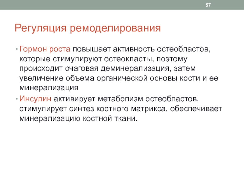 Инсулин активирует метаболизм остеобластов, стимулирует синтез костного матрикса, обеспечивает минерализацию костной ткани.