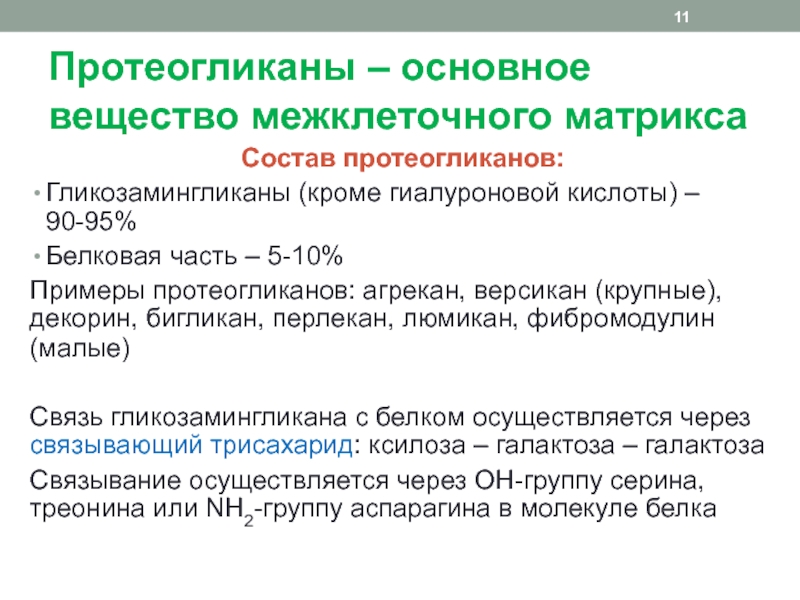 Слайд 11Протеогликаны – основное вещество межклеточного матрикса