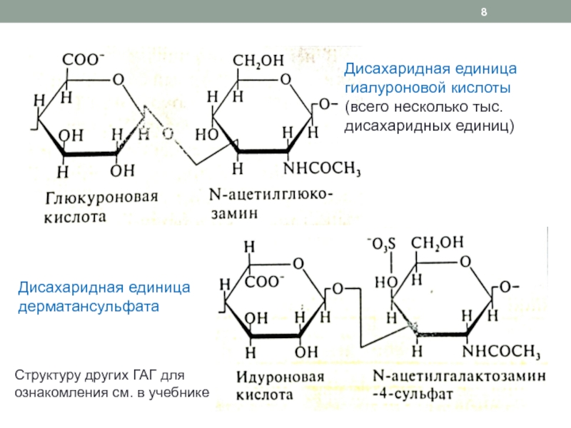 Слайд 7Гликозамингликаны, или мукополисахариды (ГАГ)