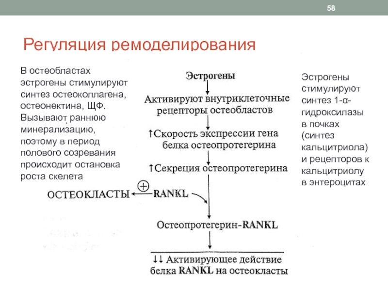 В остеобластах эстрогены стимулируют синтез остеоколлагена, остеонектина, ЩФ. Вызывают