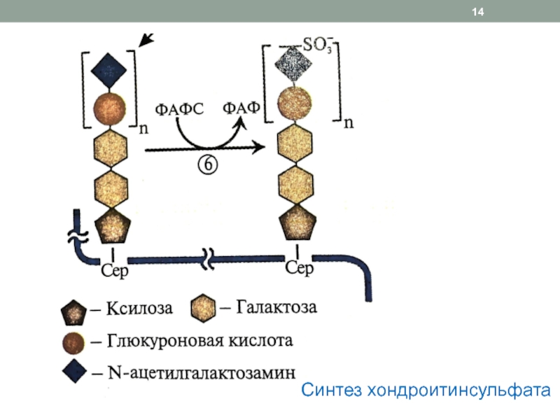Связь гликозамингликана с белком осуществляется через связывающий трисахарид: ксилоза – галактоза – галактоза