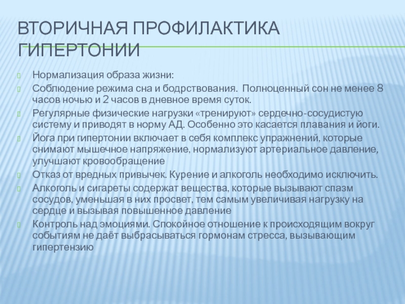 Слайд 13ВТОРИЧНАЯ ПРОФИЛАКТИКА
