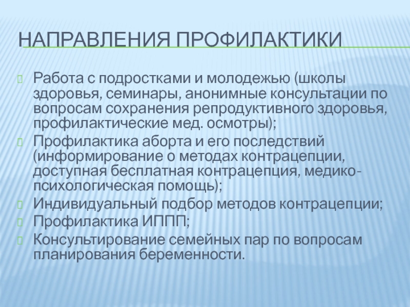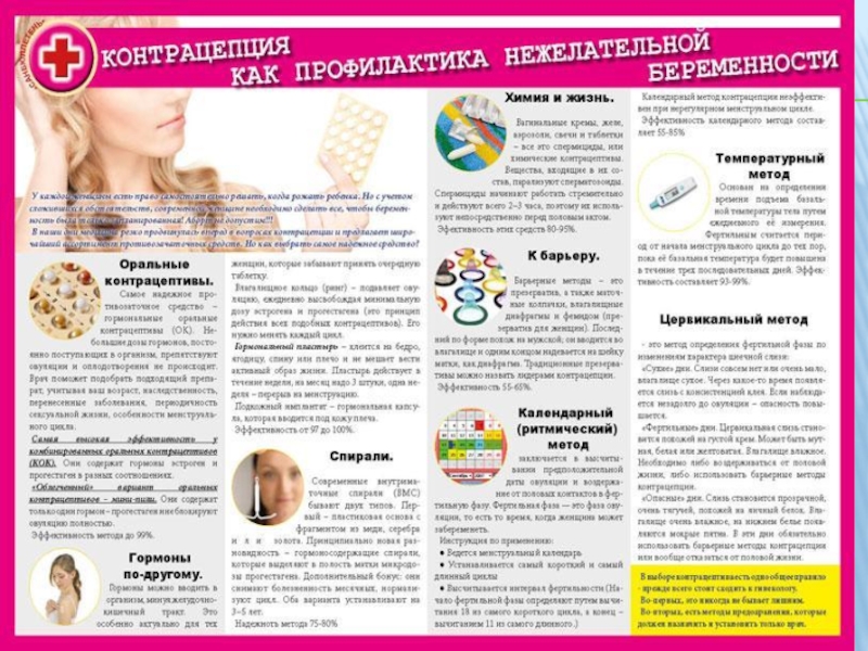 аборта и его последствий (информирование о методах контрацепции, доступная бесплатная контрацепция, медико-психологическая помощь);
