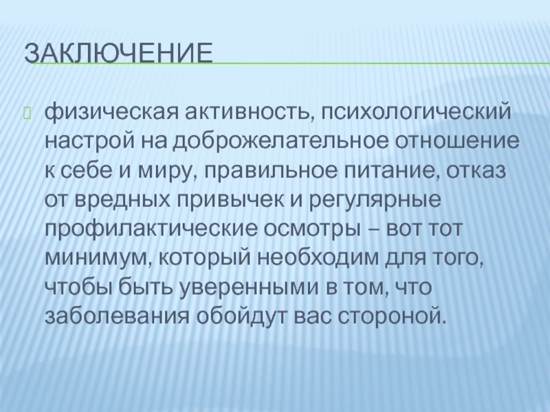 и миру, правильное питание, отказ от вредных привычек и регулярные