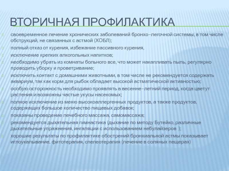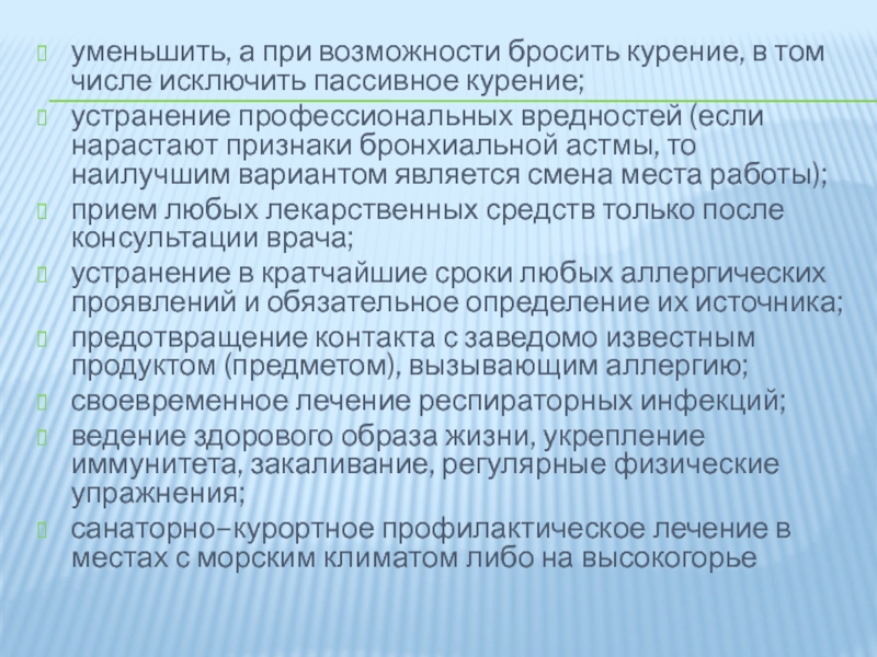 Слайд 11ПРОФИЛАКТИКА БРОНХИАЛЬНОЙ АСТМЫ