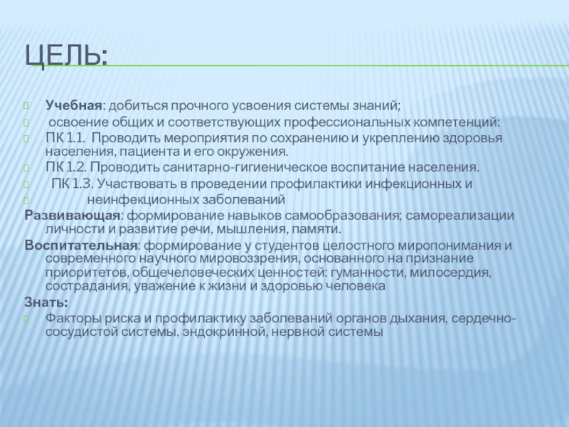 ПК 1.2. Проводить санитарно-гигиеническое воспитание населения.