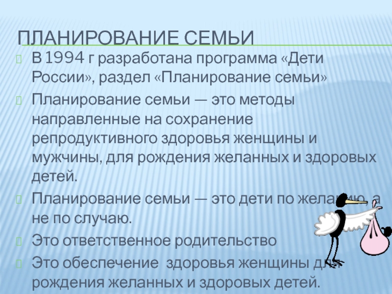 Слайд 46ПЛАНИРОВАНИЕ СЕМЬИ