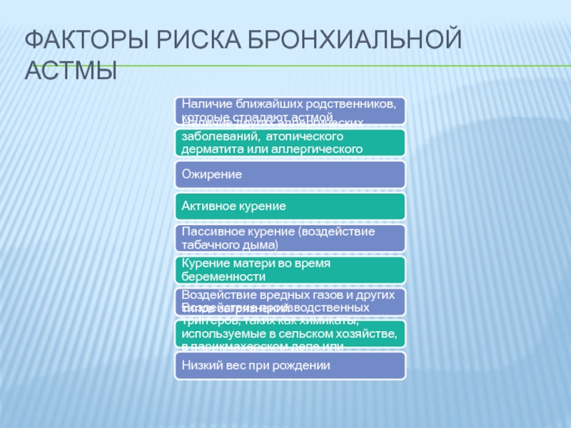 Слайд 9ФАКТОРЫ РИСКА БРОНХИАЛЬНОЙ АСТМЫ
