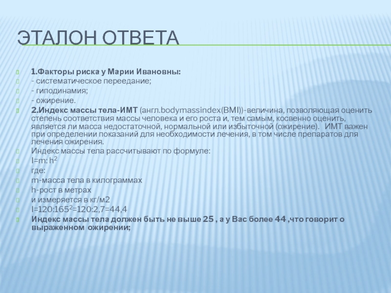 Выявите факторы риска, имеющиеся у Марии Ивановны.