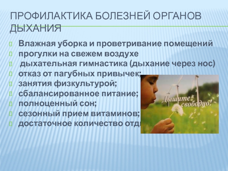 Слайд 8ПРОФИЛАКТИКА БОЛЕЗНЕЙ ОРГАНОВ ДЫХАНИЯ