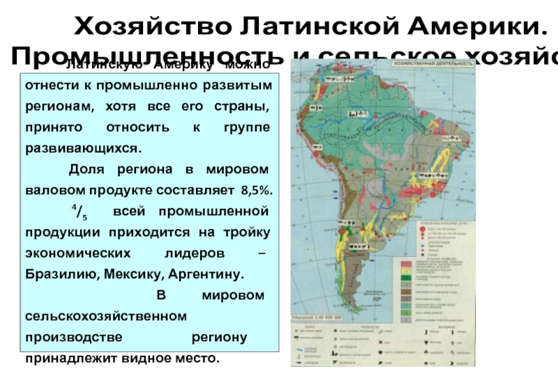 В Бразилии получили развитие электроника, автомобиле-, судо-, самолетостроение; в Мексике, Арген-тине – производство автомобилей, станков.