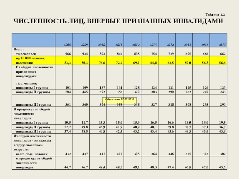 Таблица 2.2ЧИСЛЕННОСТЬ ЛИЦ, ВПЕРВЫЕ ПРИЗНАННЫХ ИНВАЛИДАМИ