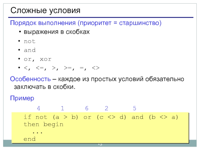 Слайд 15Сложные условия
