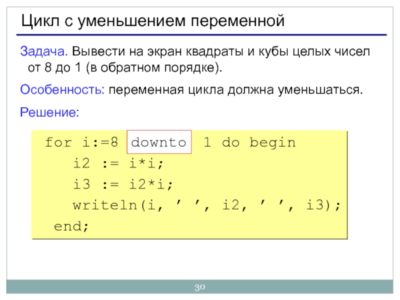 for i:=a downto b do
