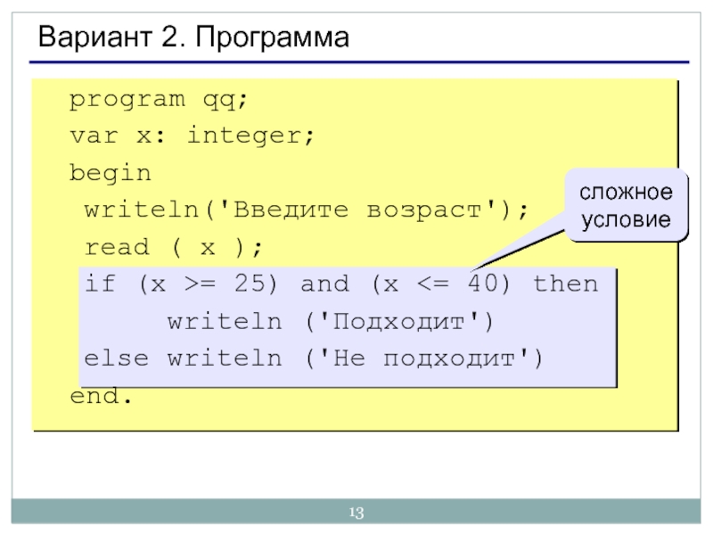Слайд 13Вариант 2. Программа