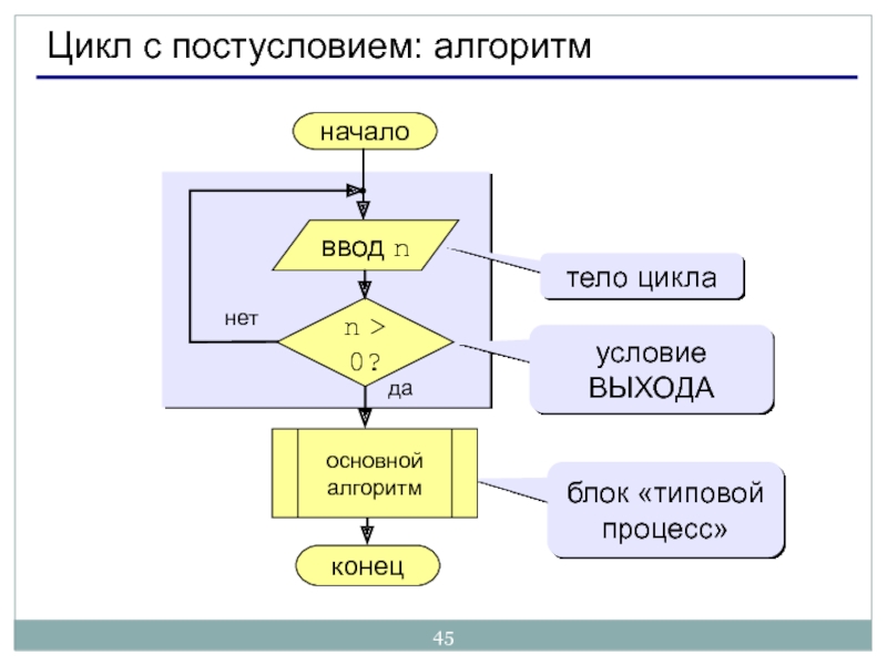 Слайд 45Цикл с постусловием: алгоритм