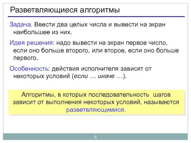 Слайд 2Разветвляющиеся алгоритмы