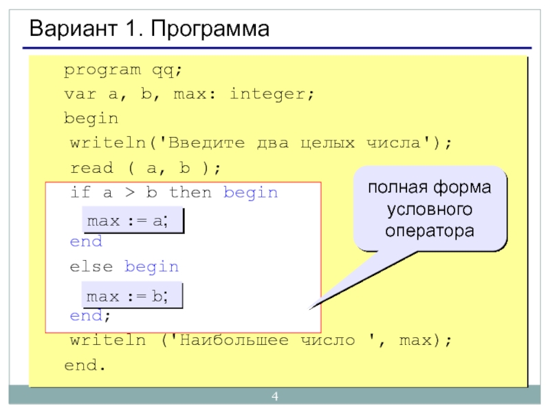 полная форма условного оператора