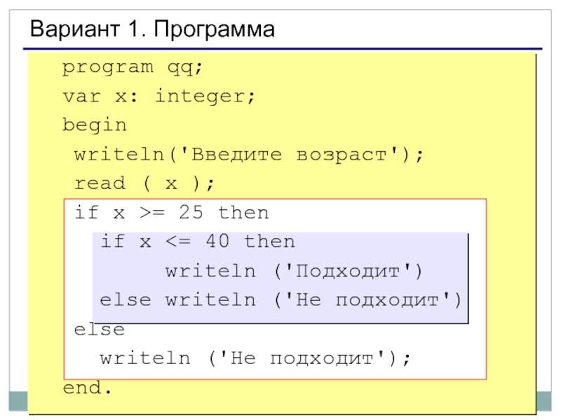 Слайд 11Вариант 1. Программа