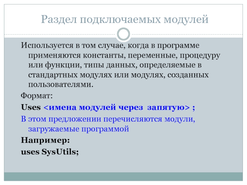 Uses <имена модулей через запятую> ;