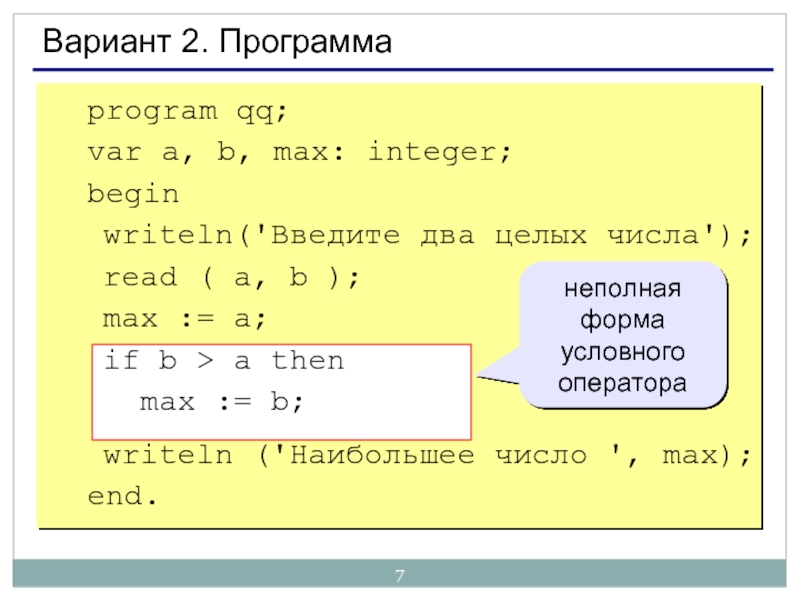 неполная форма условного оператора