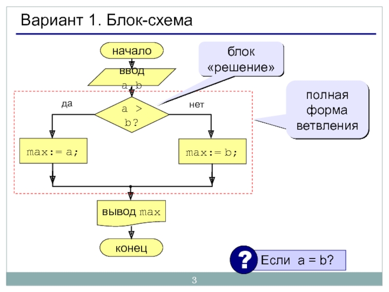 Слайд 3Вариант 1. Блок-схема