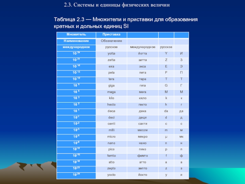 Система единиц физических величин (физические формулы дольные и кратные множители, правила их применения);