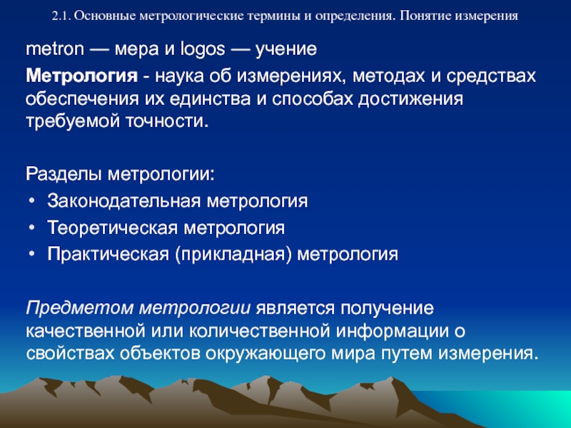 Слайд 52.1. Основные метрологические термины и определения. Понятие измерения