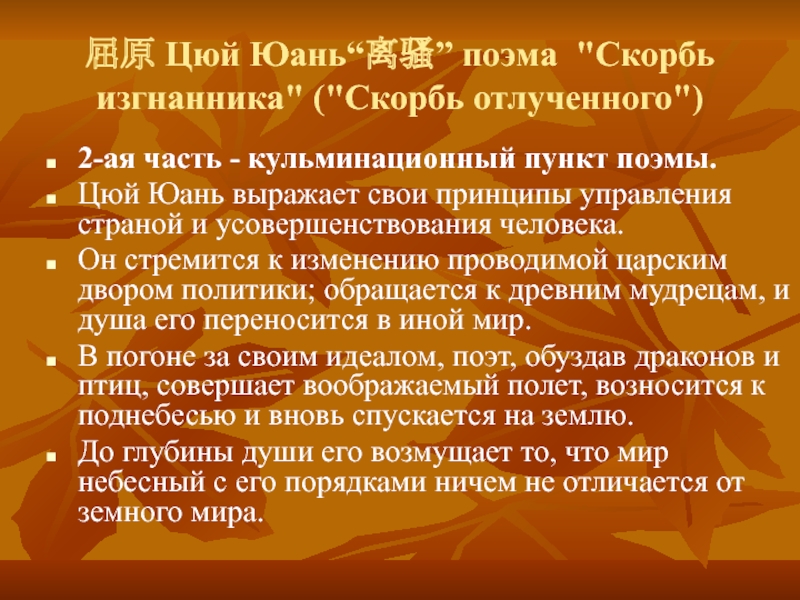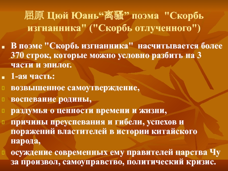 Слайд 8屈原 Цюй Юань“离骚” поэма "Скорбь изгнанника" ("Скорбь отлученного")