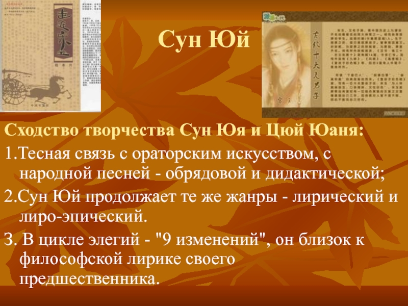 2.Сун Юй продолжает те же жанры - лирический и лиро-эпический.