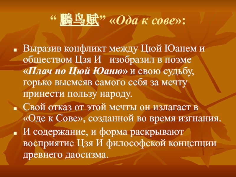 Слайд 23“ 鵩鸟赋” «Ода к сове»: