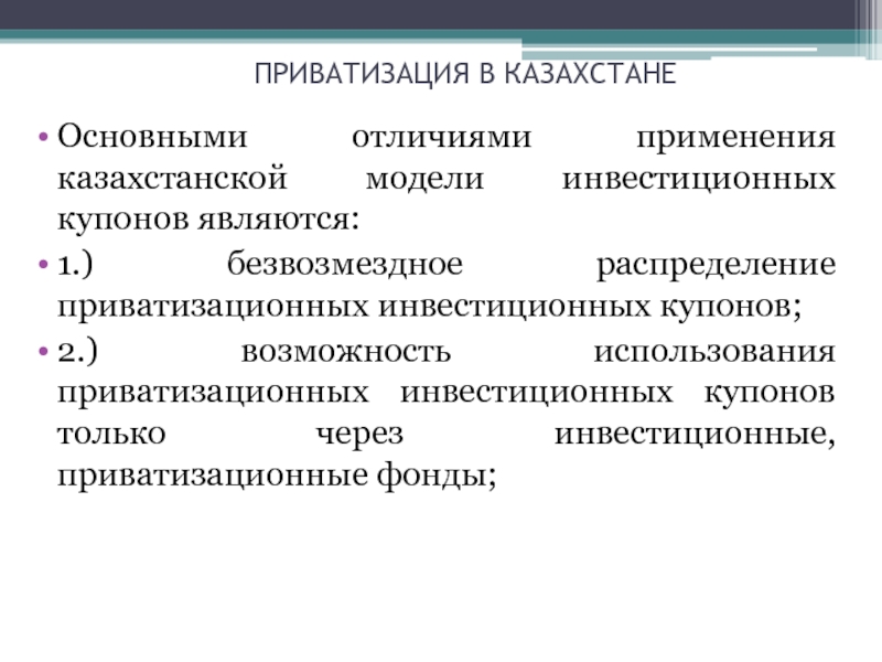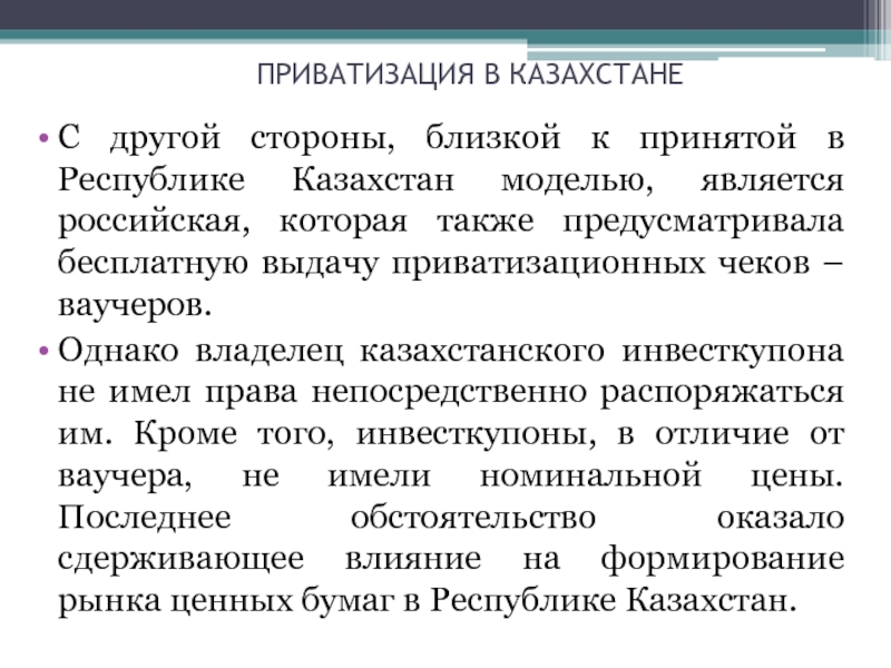 Казахстан моделью, является российская, которая также предусматривала бесплатную выдачу приватизационных