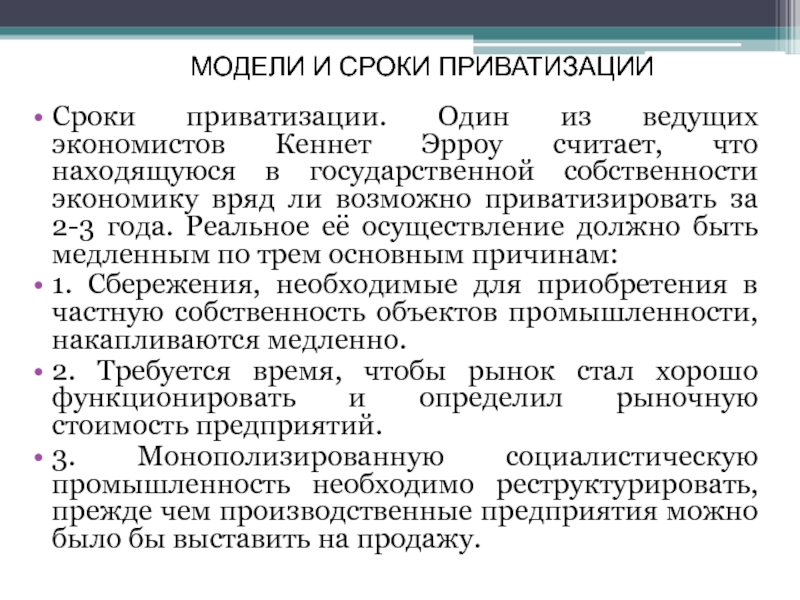 3. Изменения структуры собственности должны носить постепенный характер, чтобы не нарушить установившиеся экономические связи.