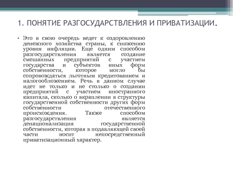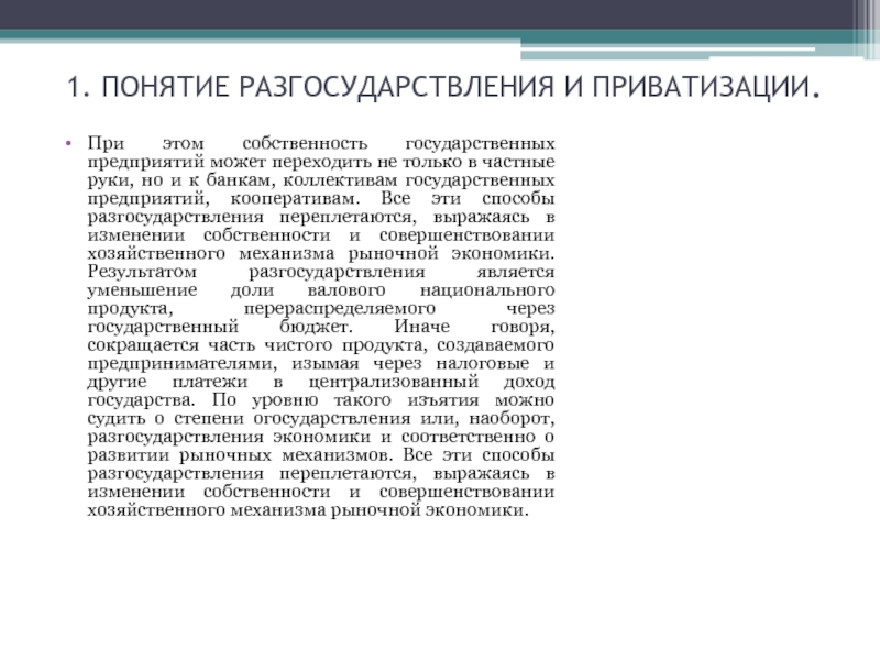 Слайд 71. ПОНЯТИЕ РАЗГОСУДАРСТВЛЕНИЯ И ПРИВАТИЗАЦИИ.