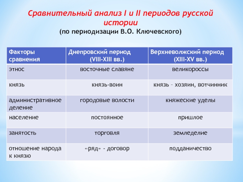 Слайд 5Сравнительный анализ I и II периодов русской истории