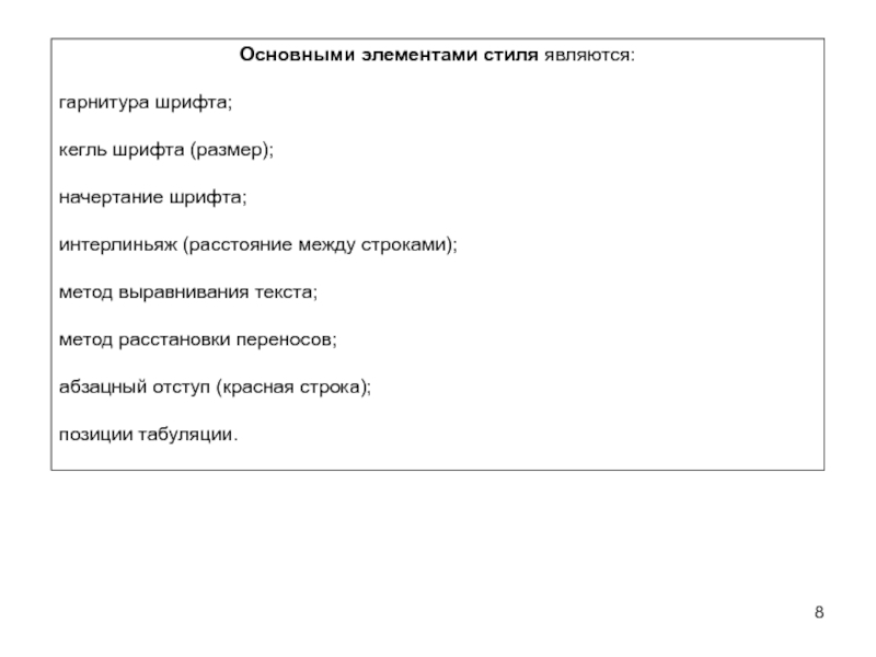 Стиль – это совокупность элементов оформления, применяемая к абзацу текста.