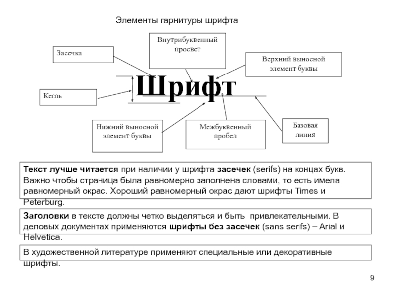 Элементы гарнитуры шрифта