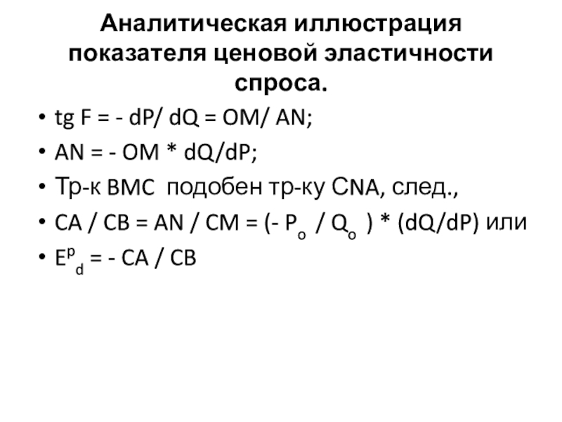 Слайд 11Аналитическая иллюстрация показателя ценовой эластичности спроса.