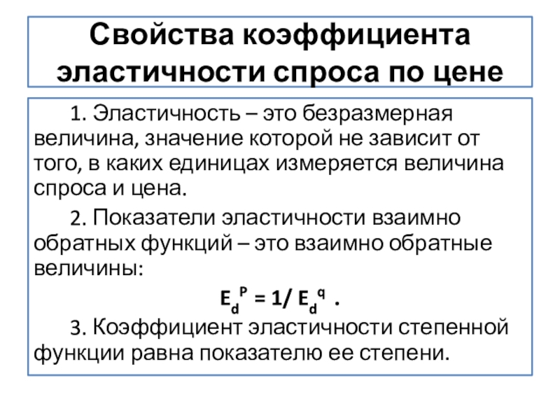 Слайд 6Свойства коэффициента эластичности спроса по цене